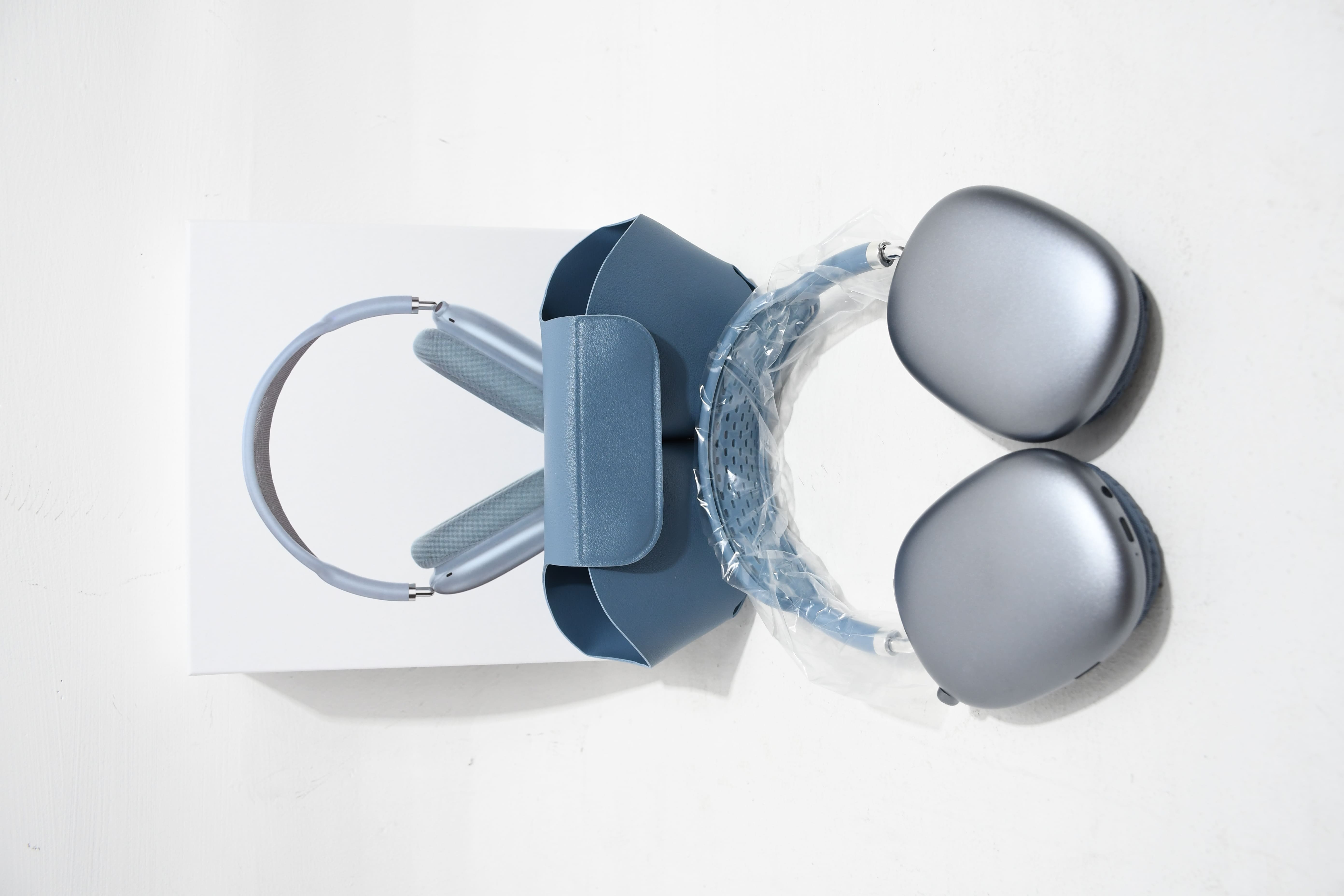 Color: Azul pálido en la diadema y estuche, copas de los auriculares en un tono metálico grisáceo.