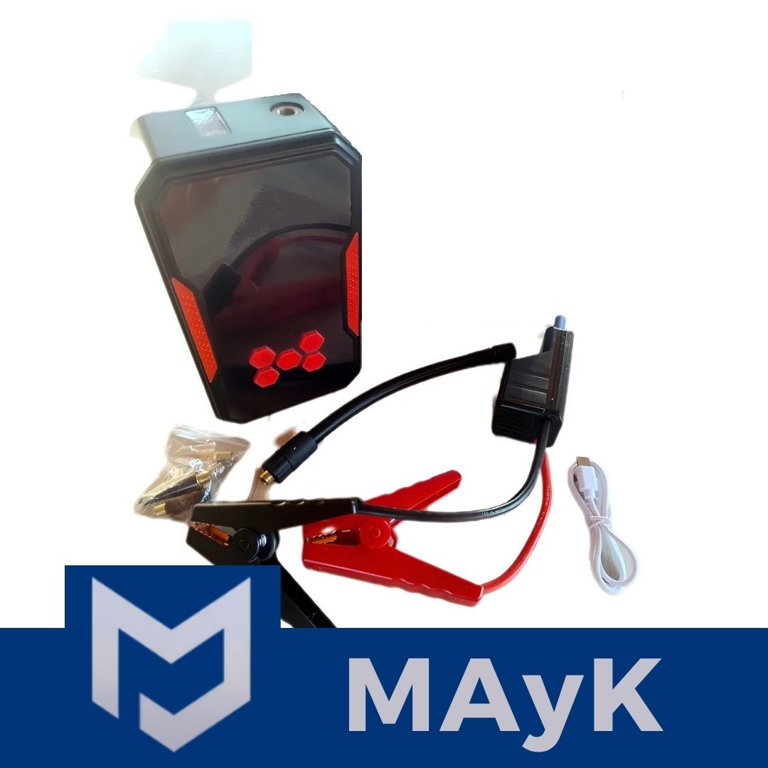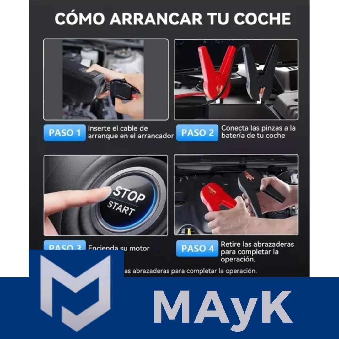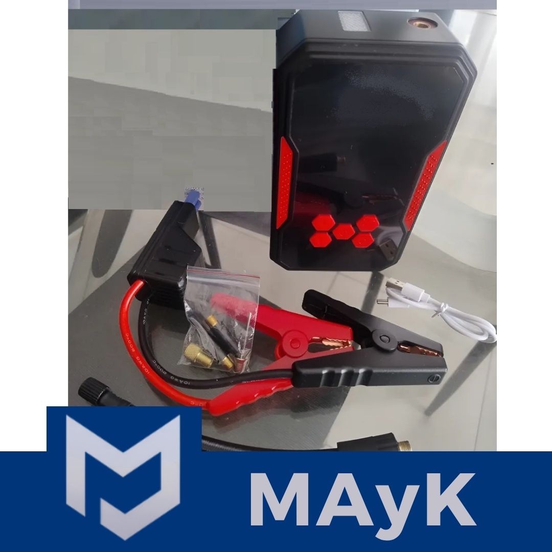 Arrancador de Batería Auto Motos con compresor de aire - Linterna Power Bank Multifuncional 4 en 1 - 10000 mAh 12V- 150PSI
