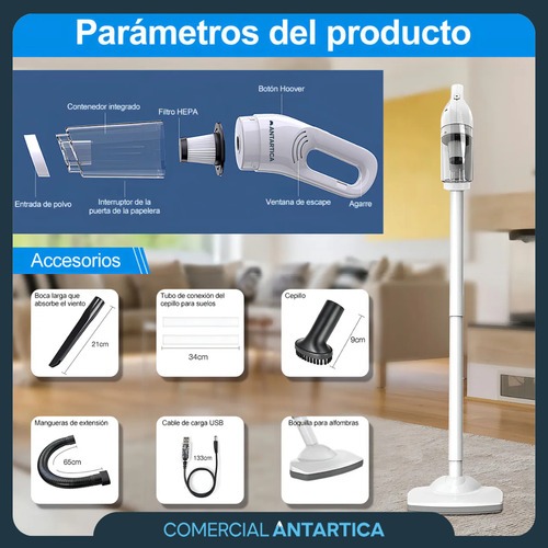 Filtro HEPA lavable: Retiene partículas finas y alérgenos, garantizando una limpieza más profunda.