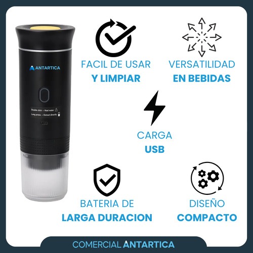 • Batería recargable por USB con autonomía para múltiples preparaciones.