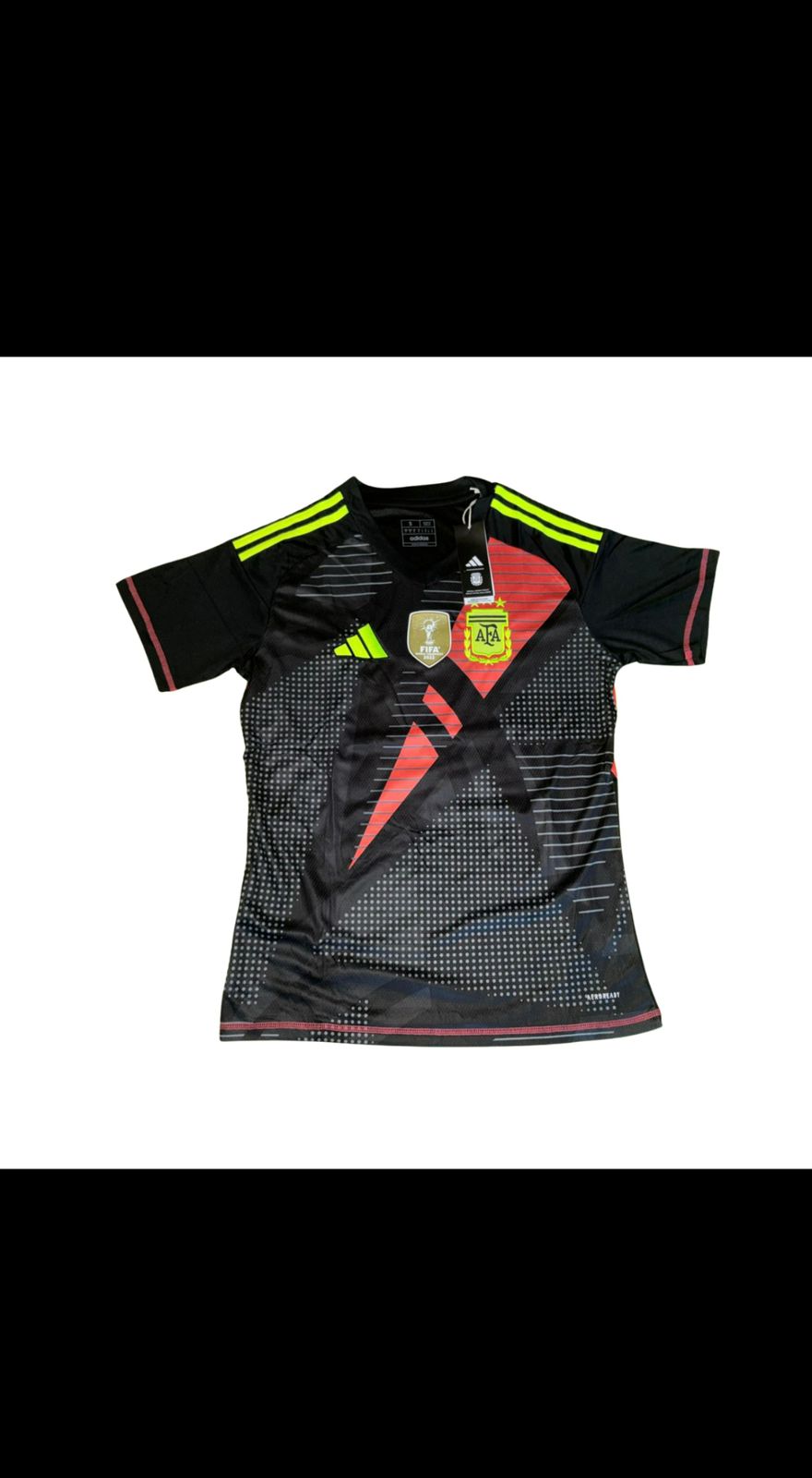 La Camiseta de Arquero de la Selección Argentina “Dibu Martínez” es el símbolo de seguridad bajo los tres palos. Con un diseño en negro y detalles vibrantes, esta prenda combina estilo, tecnología y orgullo nacional. Ideal para fanáticos del fútbol y seguidores del campeón del mundo que quieren vestir como su ídolo.
