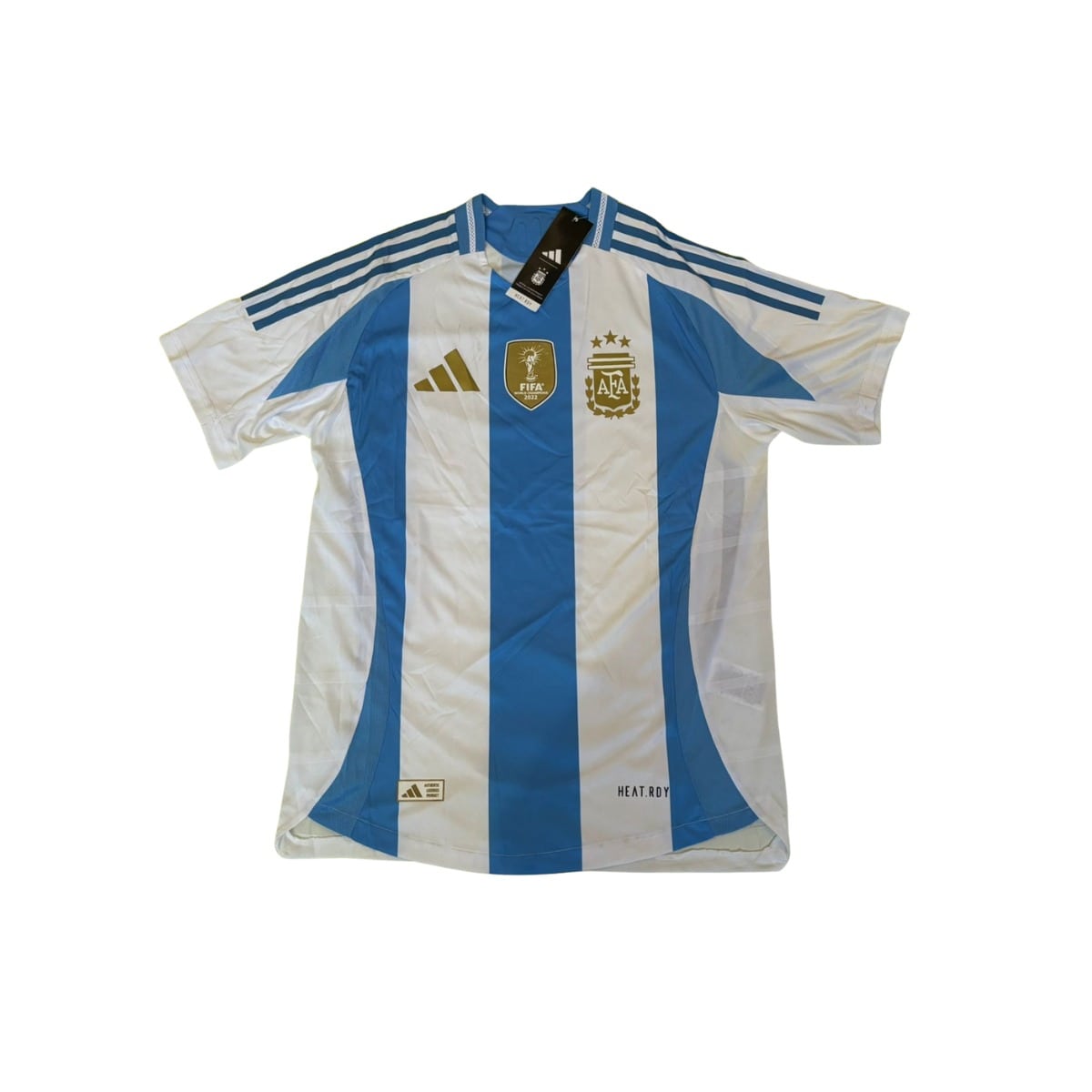 La Camiseta Titular de la Selección Argentina rinde homenaje al equipo campeón del mundo con su diseño clásico y elegante. Fabricada con materiales livianos y tecnología HEAT.RDY, ofrece máxima comodidad y ventilación. Ideal para alentar, entrenar o coleccionar, esta camiseta es un símbolo de orgullo y pasión albiceleste.