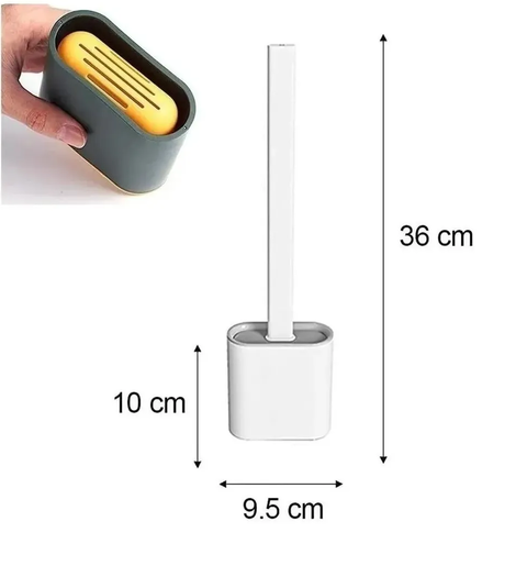 El cabezal del cepillo de inodoro es repelente al agua, eliminando la molestia de goteo. El cabezal del cepillo de silicona se limpia más a fondo, no daña la superficie de cerámica, tiene una fuerte detergencia y tiene una forma única. Una de las principales ventajas de la escobilla flexible con punta de silicona es su capacidad para limpiar de manera efectiva sin rayar o dañar las superficies. La silicona es un material suave y no abrasivo que protege el esmalte de los inodoros, bachas y otras superficies delicadas. Además, su flexibilidad permite llegar a áreas de difícil acceso, como las esquinas o los bordes curvos. - Los materiales seleccionados garantizan calidad y longevidad. El mango es de polipropileno y el cabezal del cepillo de inodoro de silicona premium tiene una excelente durabilidad. Diseño de base, más higiénico y limpio.