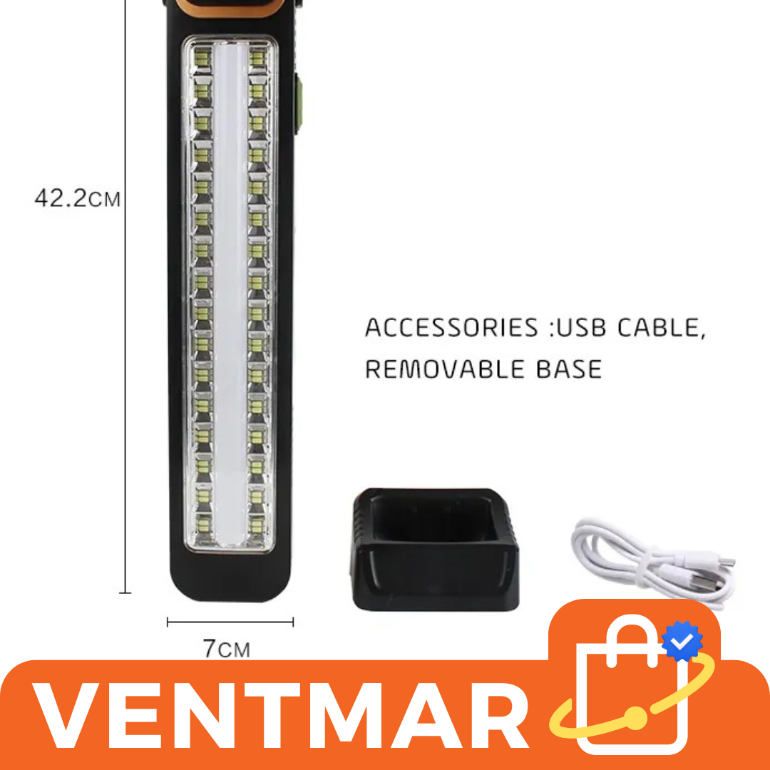 Luz de Emergencia Recargable 48 LEDs — confiable, portátil y ecológica.