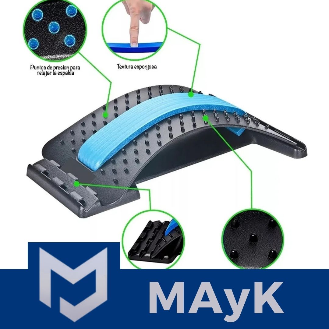 -Dispositivo multi nivel para estirar toda la espalda: sacro, lumbares, torácicas y cervicales. También puede usarse en el piso para relajar los pies al rozarlos con el masajeador.