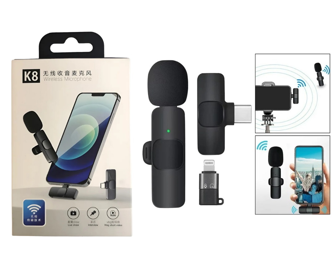 Lleva tu voz al siguiente nivel con este mini micrófono de solapa inalámbrico, ideal para grabar entrevistas, streaming, videos y clases online. Compatible con todos los dispositivos con puerto tipo C o adaptador iPhone.