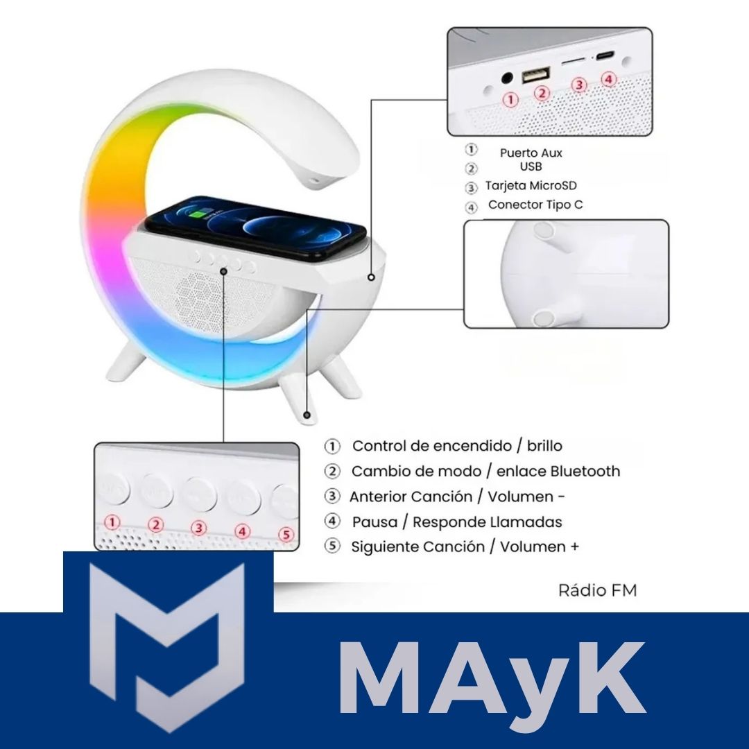 Cargador Inalámbrico Celular Con Parlante Y Luz Led Bt2301