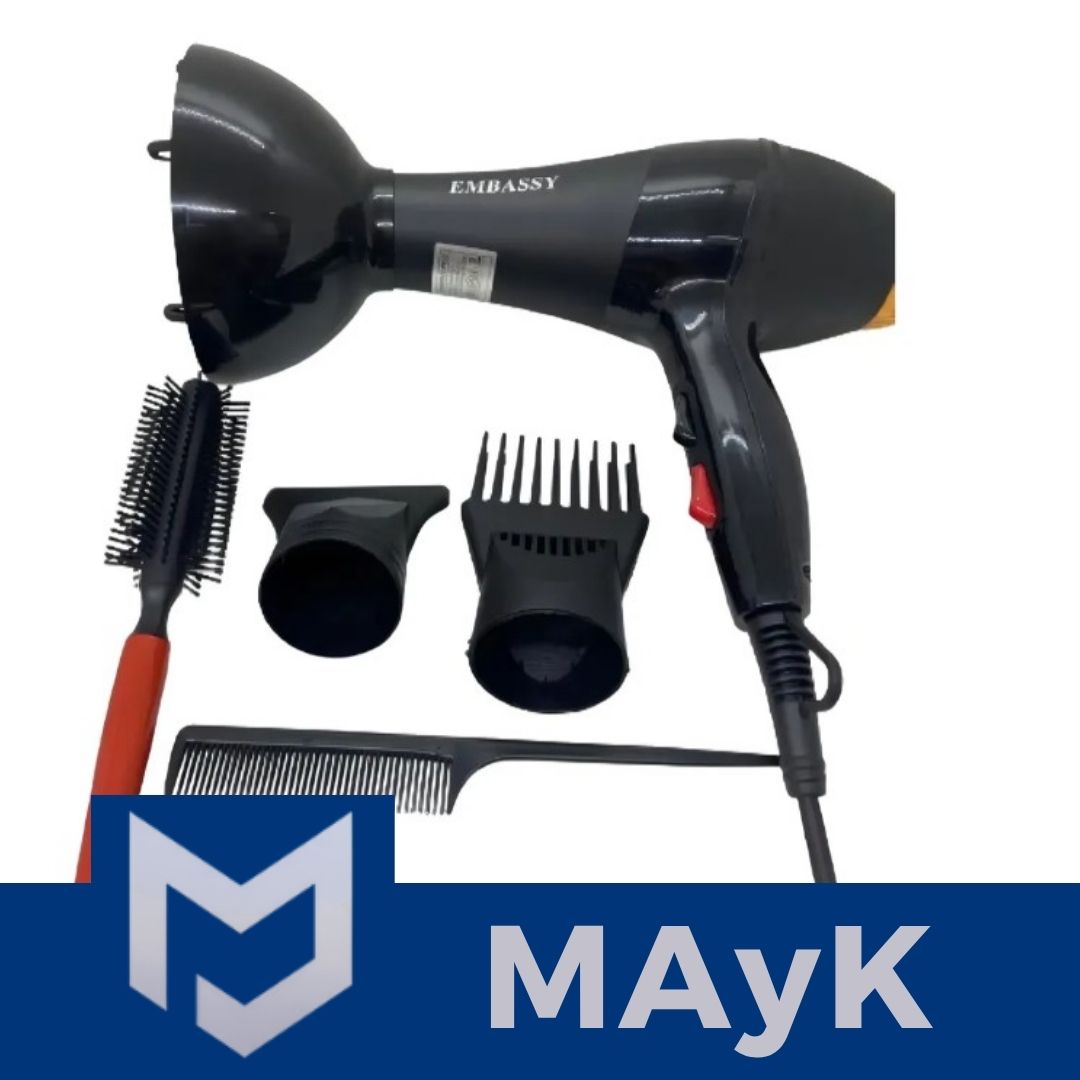 Su función de aire frío es ideal para fijar peinados y dar un acabado brillante. Incluye una boquilla de conducción, un peine y un cepillo, facilitando el estilizado y el volumen en cada uso. Con una tensión de 220V y una potencia de 1600W, este modelo EM-MX160 de la marca Embassy es la herramienta perfecta para lograr un cabello espectacular. Su diseño profesional asegura durabilidad y rendimiento, convirtiéndolo en un aliado indispensable en tu rutina de belleza.
