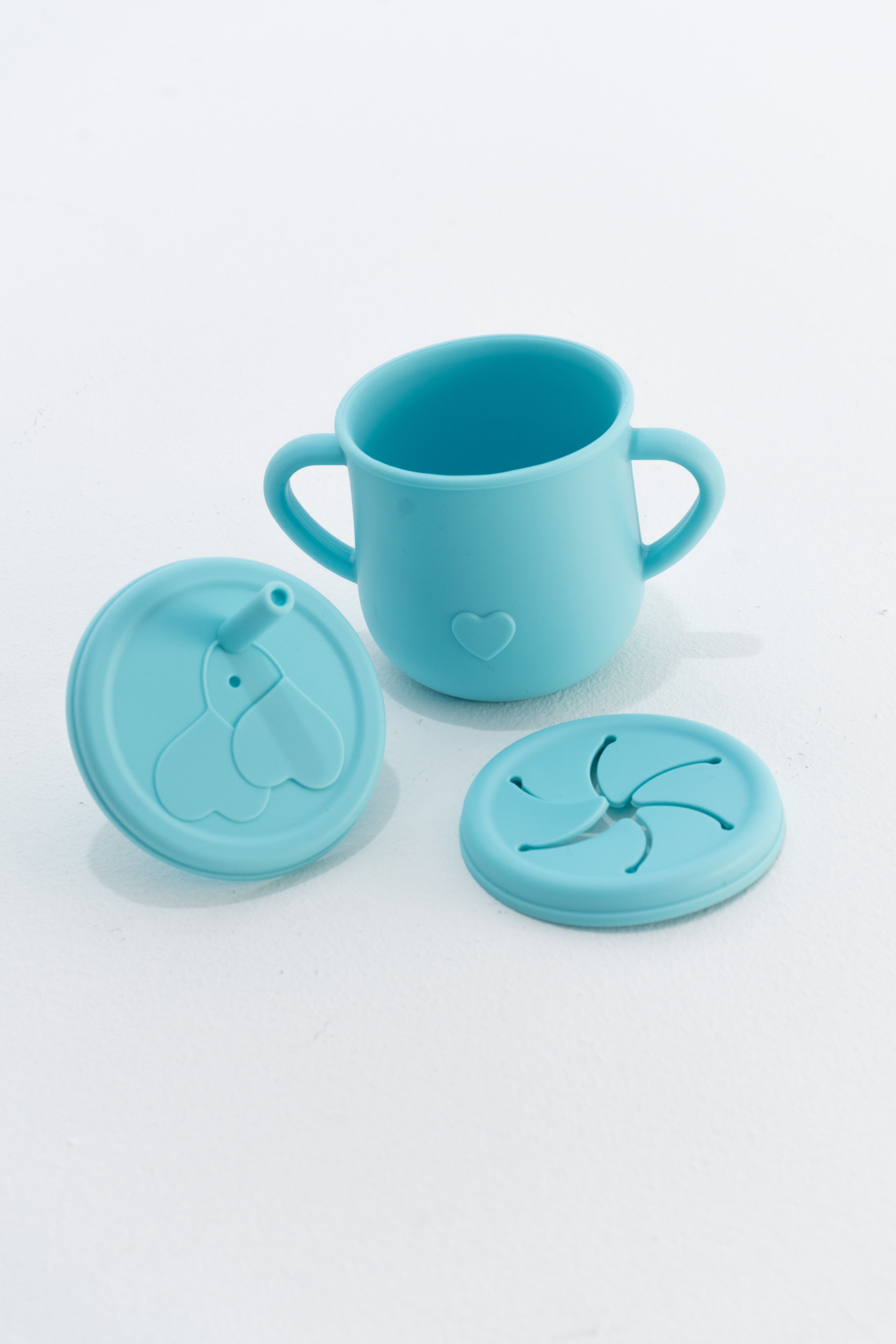 - Incluye: 1 babero, 1 plato, tenedor y cuchara, vaso con 2 tapas y 1 bowl, todo de silicona.