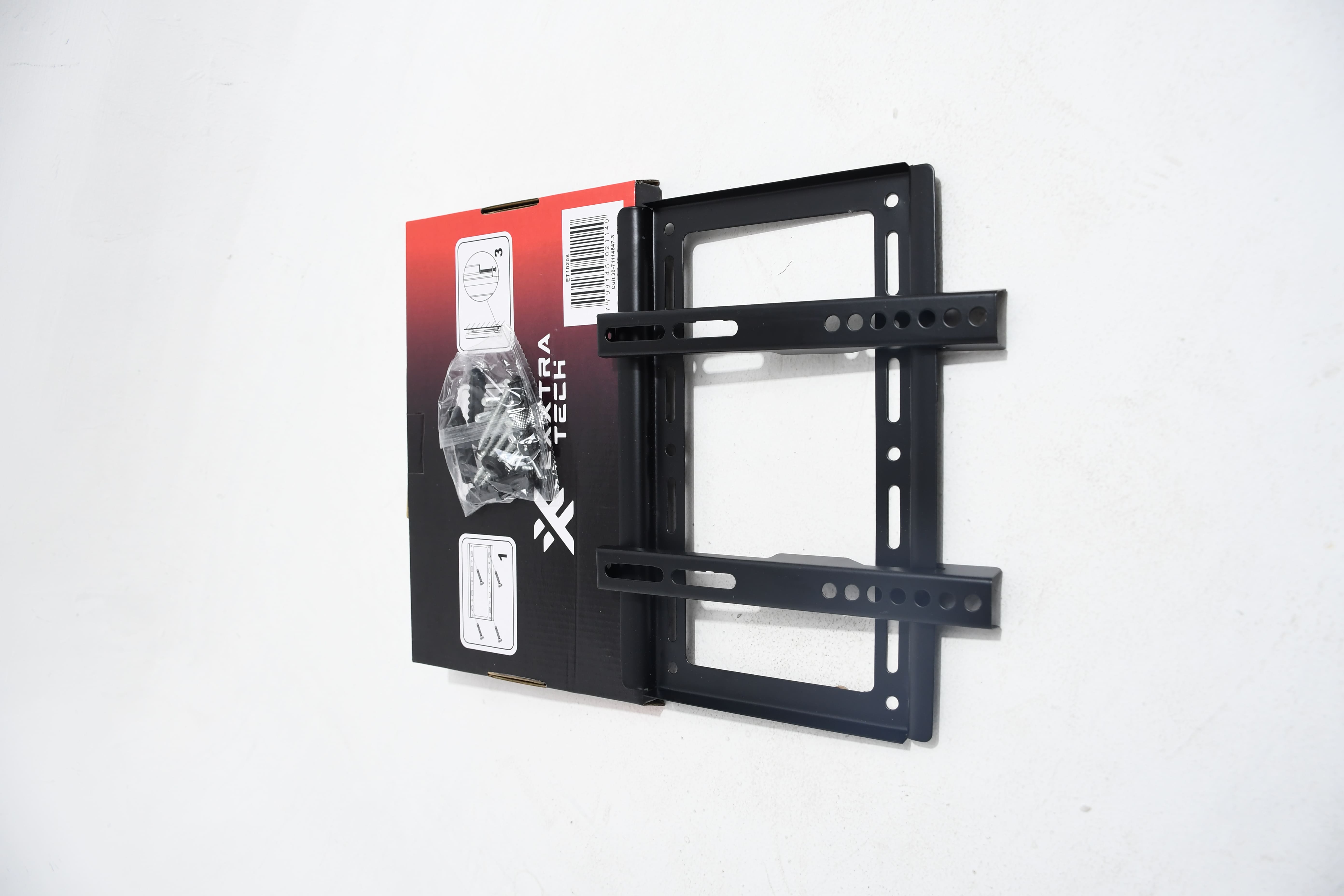 El soporte para TV Exxtra Tech ofrece una sujeción firme y segura para pantallas de hasta 42 pulgadas. Su diseño resistente y de fácil instalación garantiza estabilidad y ahorro de espacio en cualquier ambiente. Ideal para hogares, oficinas o espacios comerciales.