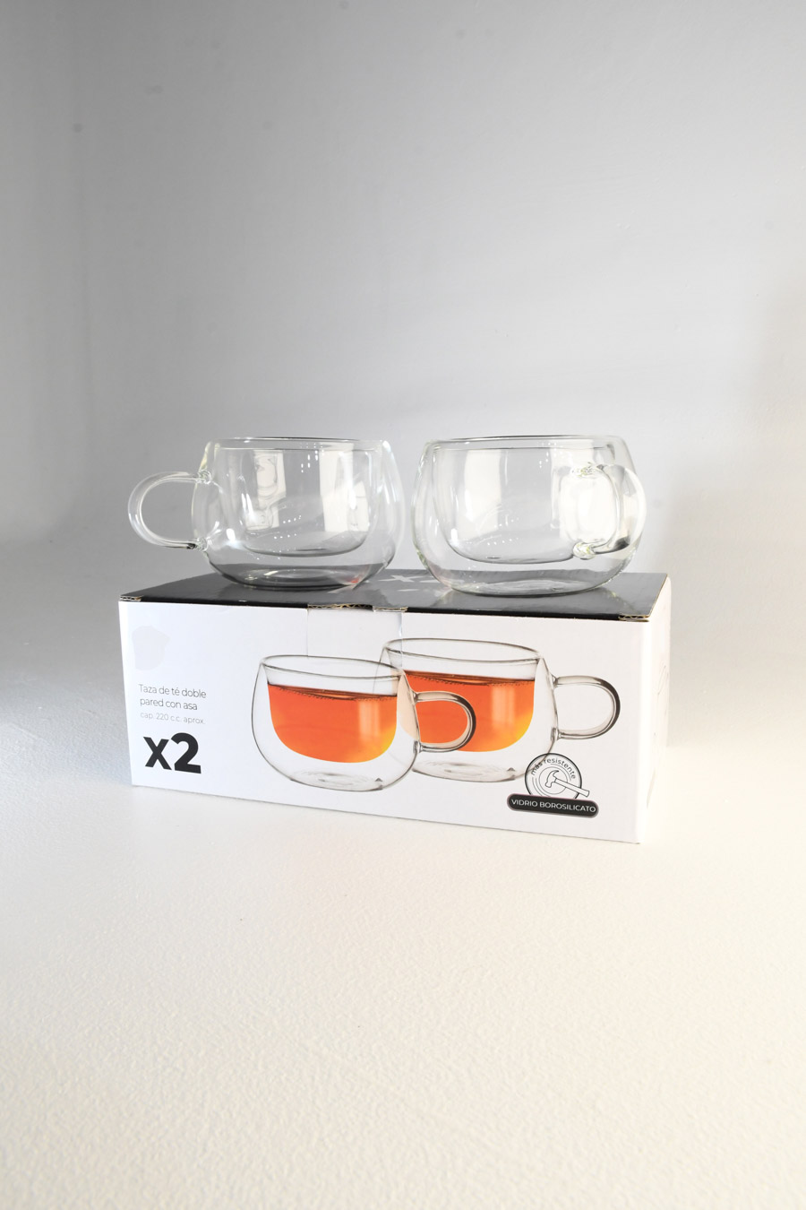 SET x2 TAZAS DOBLE VIDRIO NUVOH CON ASA 220cc