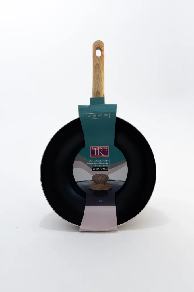 Este wok de 28 cm con revestimiento antiadherente y mango ergonómico es ideal para saltear y cocinar con poco aceite, cuidando tus alimentos y utensilios.